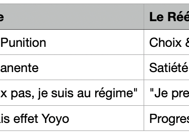 Le Régime : C'est temporaire ("Je tiens 3 semaines"). Dès qu'on arrête, les vieilles habitudes reviennent au galop, car on n'a rien appris.