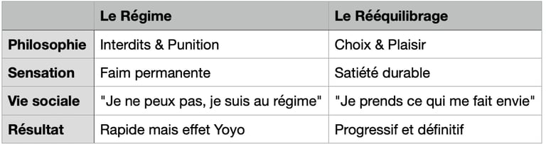 Le Rééquilibrage : C'est un nouveau mode de vie. C'est flexible, ça s'adapte aux vacances, aux restaurants, aux fêtes de famille.